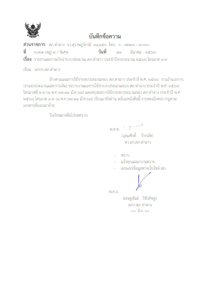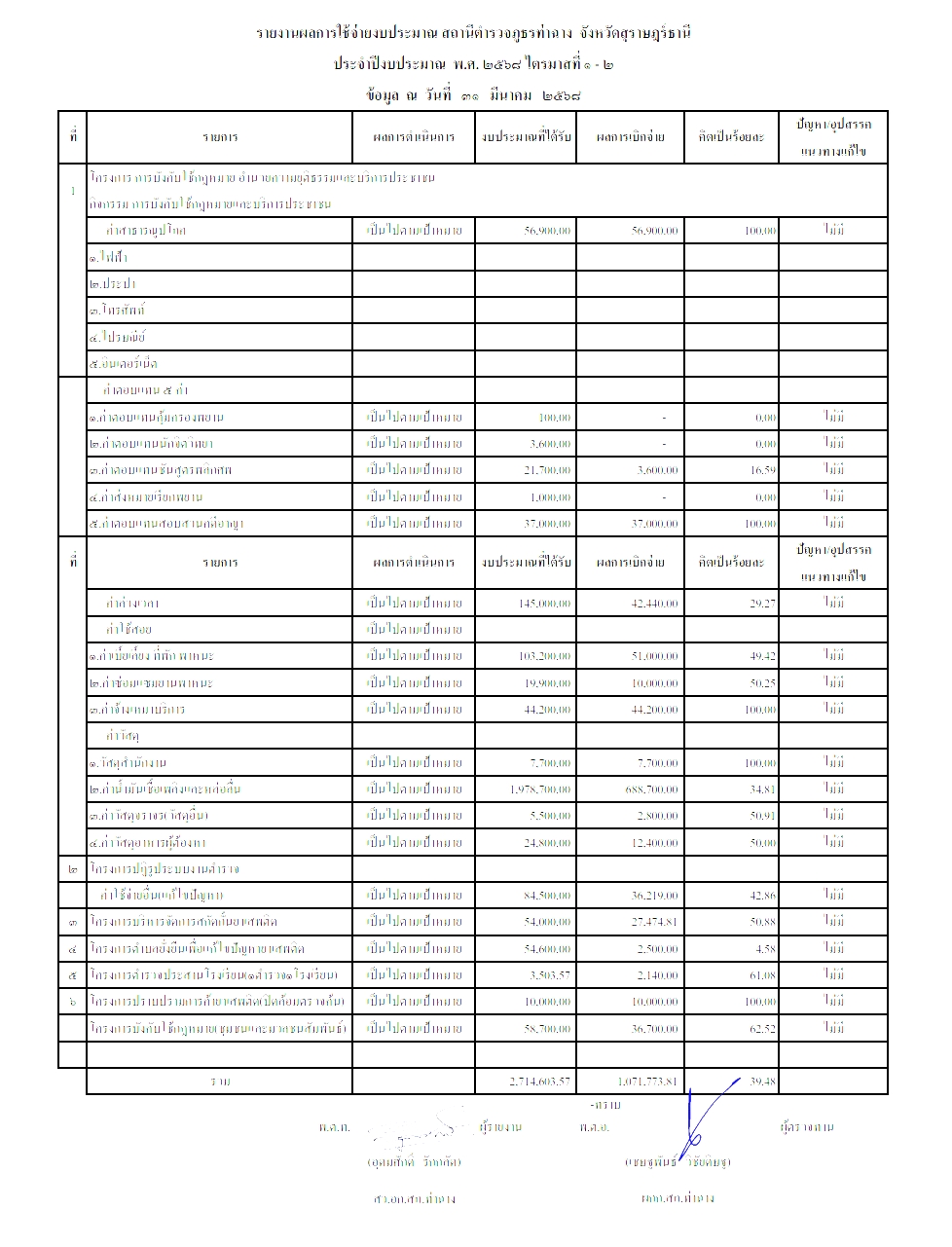 รายงานผลการใช้จ่ายงบประมาณ เป็นไฟล์ EXCEL และ PDF