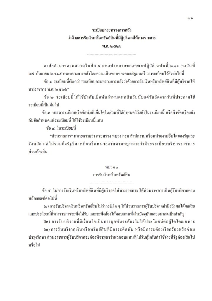 ระเบียบกระทรวงการคลังว่าด้วยรรับเงินหรือทรัพย์สินที่มีผู้บริจาคให้ทางราชการ พ.ศ.2526คลิ๊กอ่าน